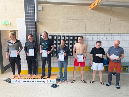42 dieser 100 Läufer begaben sich nach dem Rundendrehen noch in die naheliegende Schwimmhalle, um ihre 50 m bis 800 m zu absolvieren.