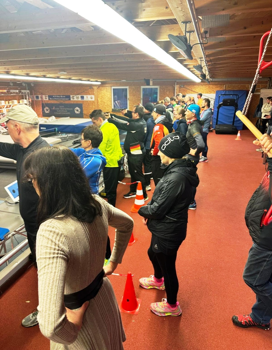 Die Teilnehmer:innen hatten die Gelegenheit, den Modernen Fünfkampf – konkret das Laserschießen in Kombination mit dem Laufen (Laser-Run) – selbst auszuprobieren.